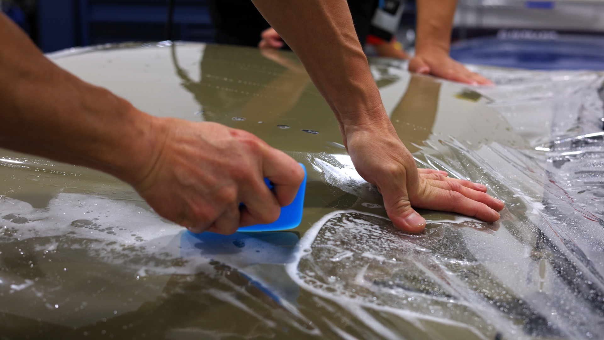 Before any film touches the paint, we always start with a deep wash and decontamination — making sure every inch of the surface is clean. Any dust or residue left behind can cause the film to fail or lift later on, so prep work is one of the most important parts of the job